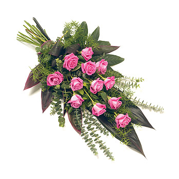 A classic and elegant sheaf of roses and complementary foliage tied with a ribbon. Size: 64cm (25").