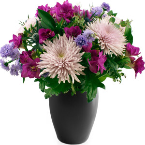A popular bouquet of seasonal blooms bursting with Pastel tones, Shades of Pink and Mauve. Complimented with luxury seasonal greenery.