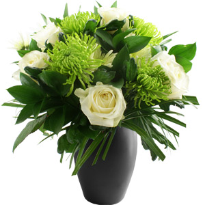 The freshest roses and cool green spider blooms are the key to this beautiful botanical flower experience. The simple, clean palette is always a favourite, finished nicely with contrasting deep green foliage for a dramatic edge.
