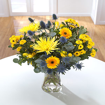 A Beautiful array of Yellows and Blues. Giving a fresh feel, yet a traditional elegance.