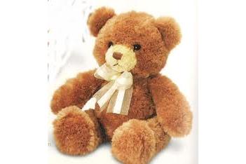 A cute brown teddy bear with a cream bow around it's neck. It will be finished with a cellophane wrap and a bow.