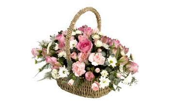 A gorgeous mix of flowers in a wicker basket specially designed for the new arrival and the family.