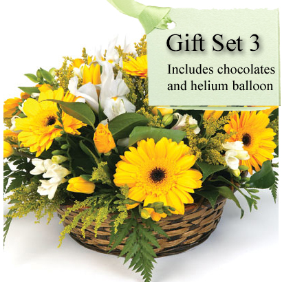 Unsure what to flowers send? Simply select a colour theme and price and we will prepare a stylish basket of flowers to suit the occasion complimented with a box of milk chocolates and a helium filled balloon!