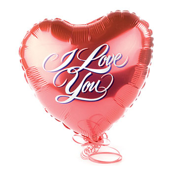 A helium filled balloon that say's "I LOVE YOU" or "LOVE YOU"