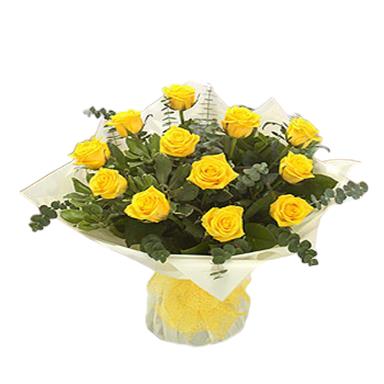 Using only the finest large headed Yellow roses and Luxury foliage to create this beautiful arrangement.