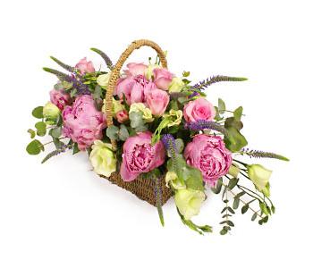 A luxury basket of stunning seasonal Peonies, Lisianthus, Veronica and complimented with a range of fresh greenery.