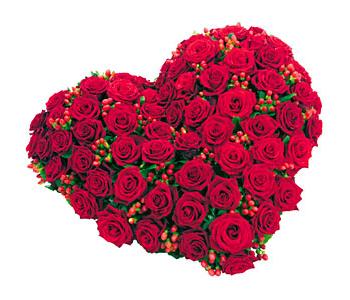 Absolutely beautiful - this stunning red rose heart is a truly luxurious tribute. Packed full of the finest quality roses, dotted with beautiful fresh hypericum berries, this is the epitome of funeral flower design. Hand delivered this beautiful arrangement is a popular choice. Item displayed is Large. On a 12 Inch Base