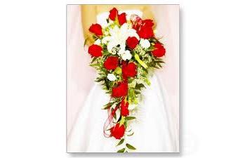 A beautiful draping bouquet with a handle. It is created using a colour scheme of your choice, flower's include oriental lilies, roses, gypsophila French ruscus , and finished with ribbons of your choice.