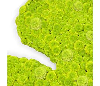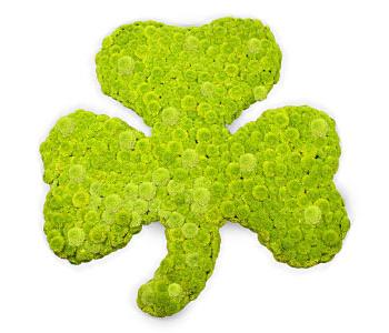 This large four-leafed clover tribute has been lovingly crafted from individual kermit chrysanthemum heads. Floristry at its best, this large and impressive tribute. Available in one size only approximately 22" across.