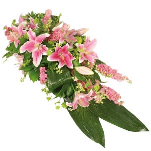 Carefully crafted this traditional rose tribute also features a mass of foliage, finished with a subtle yellow bow. A small tribute suitable for an array of situations or circumstances, this is a popular choice. A fitting arrangement for times of sadness of loss.
