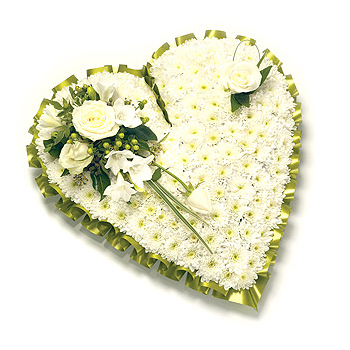 Classic white Chrysanthemum based heart shaped tribute with coordinating colours. Choose below.