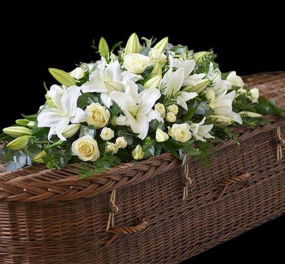 An elegant classic combining White Lilies and Large headed White roses, beautifully complimented with luxury seasonal greenery.